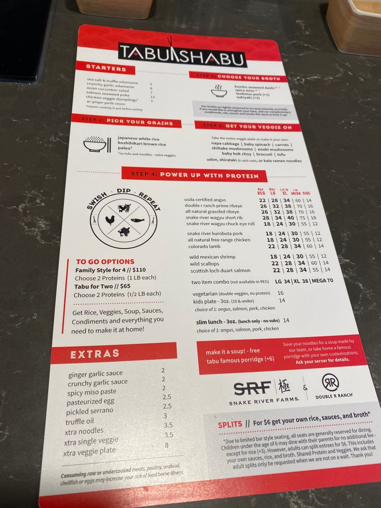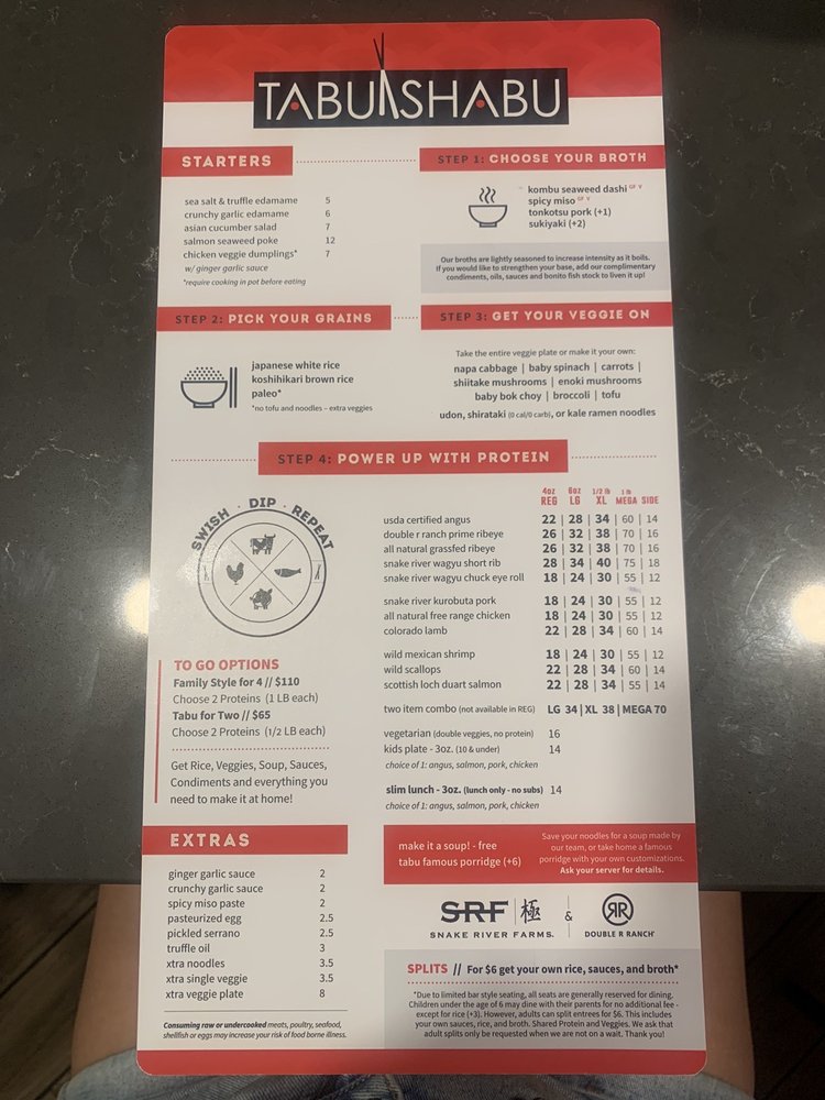 Introducing Tabu Shabu - San Jose, a vibrant destination for Japanese hot pot lovers. Located at 1410 El Paseo De Saratoga, this trendy spot combines a hip atmosphere with a diverse menu that caters to both meat-lovers and vegans alike. Diners can customize their experience by selecting from an array of high-quality proteins, savory broths, and a variety of fresh veggies. The spicy miso broth and fresh ramen noodles are standout choices, though patrons often crave more noodles due to the generous broth portions.